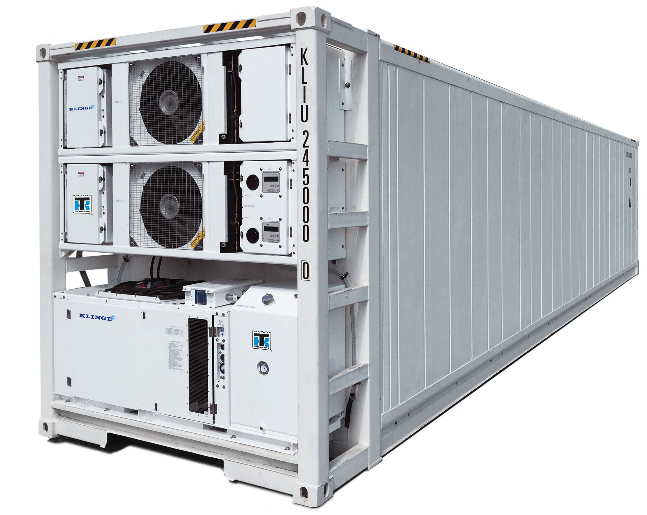 Klinge Corporation’s Dual System Deep Freezer Container, Model NMF-372, is designed for both transport and storage solutions. The unit can provide cargo temperature in the range from -20°C to -70°C. The unit operates in ambient temperatures up to +50°C and includes two independent Freezer systems which act as back-ups to each other in case of failure, thus ensuring that there will always be cooling capacity for your high-value cargo. This is particularly critical for pharmaceutical or biopharmaceutical products as even the smallest temperature excursions can lead to expensive and time-consuming evaluations of product viability and even complete product loss.